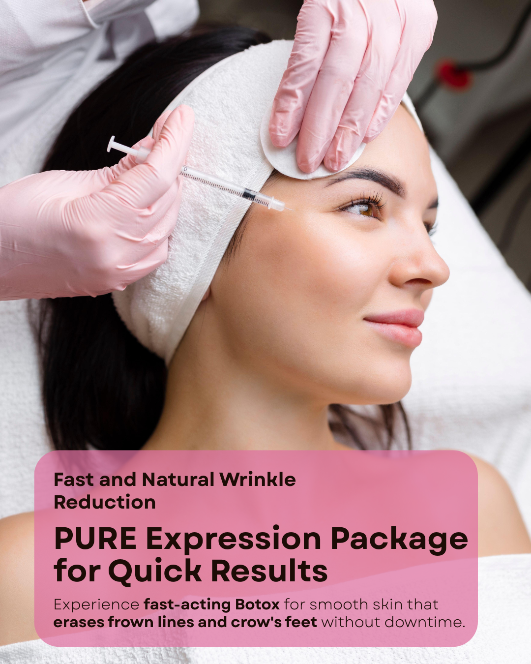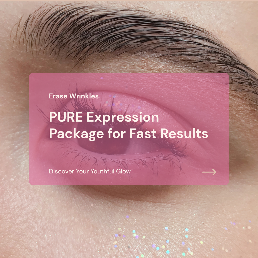 The PURE Expression Package is a bundled set of anti-aging injectables. It’s focused on the upper face, where expression lines appear the earliest.