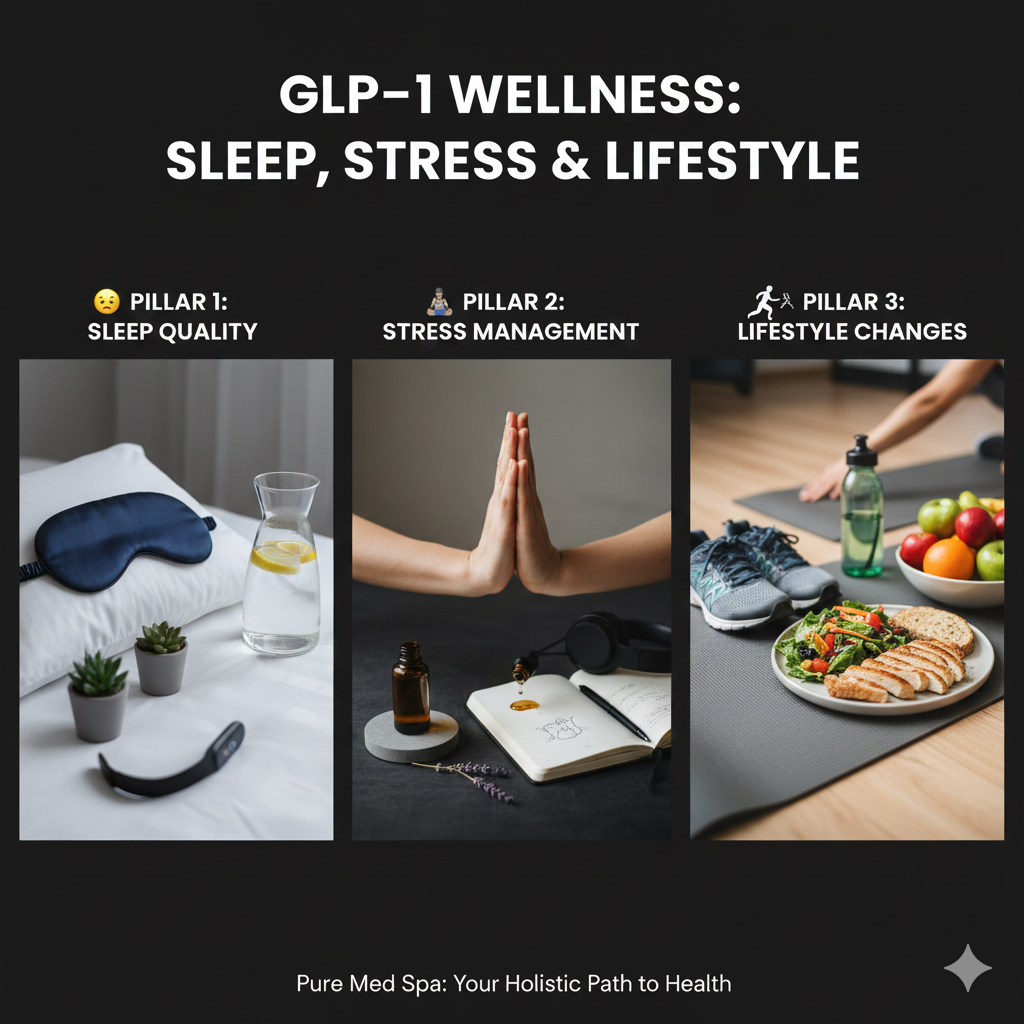 Your personalized Chicago GLP‑1 lifestyle guidance from Pure Med Spa serves as your complete guide to GLP‑1 lifestyle changes before and during treatment. We integrate all the essential GLP‑1 wellness tips-from nutrition and movement to GLP‑1 stress management strategies and sleep hygiene-to ensure your holistic success with GLP‑1 wellness: sleep, stress & lifestyle tips for best results.