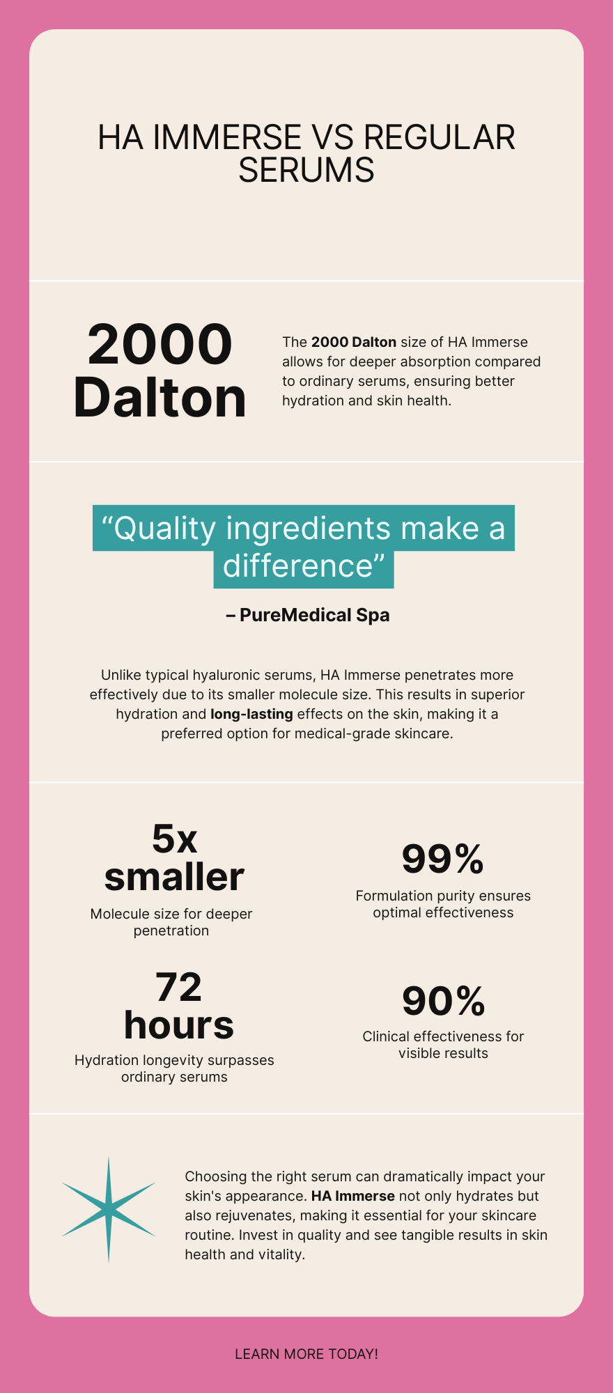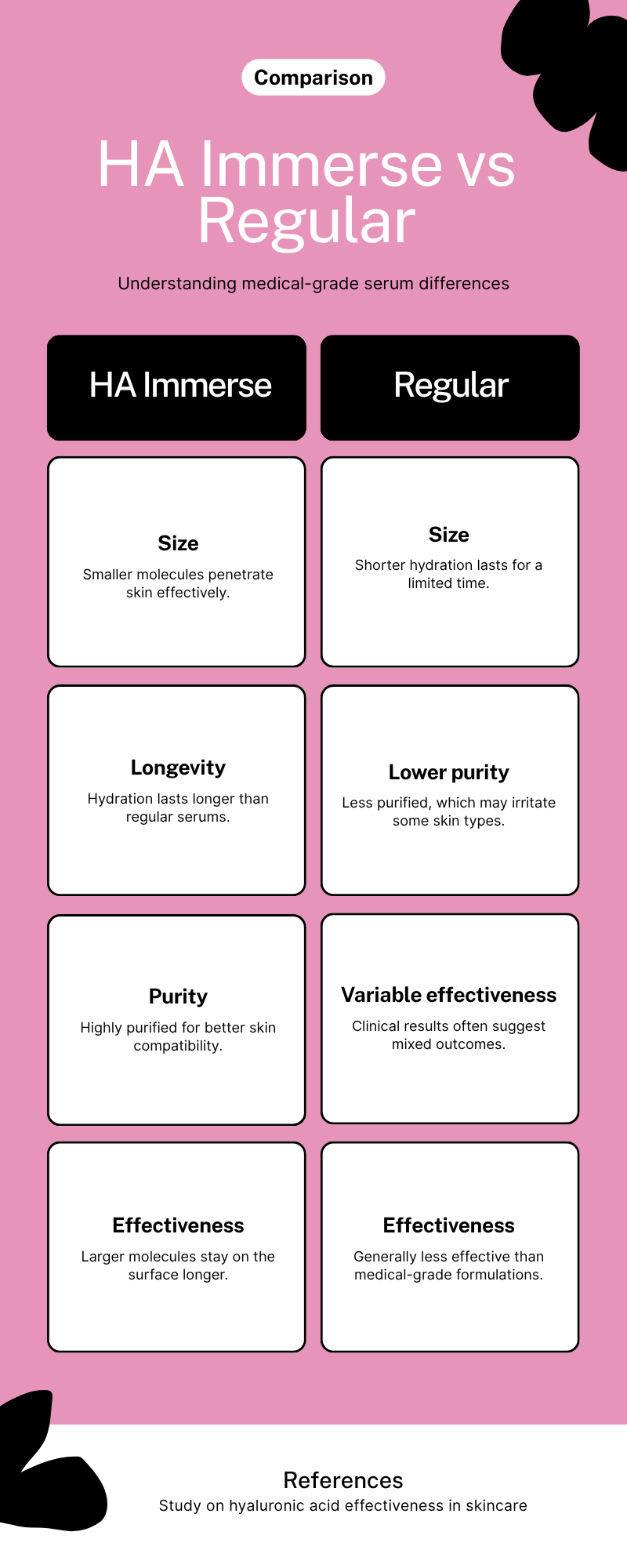 The Problem: Patients often ask: “Is HA Immerse better than regular hyaluronic acid serums?” They struggle to understand the difference between medical grade and cosmetic hyaluronic acid.
