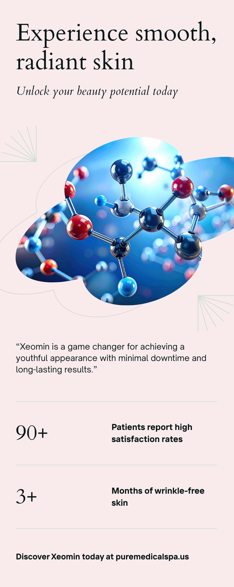 At Pure Medical Spa, we are proud to offer Xeomin as part of our advanced treatment options. If you’re ready to explore how Xeomin can enhance your skin, Call/Text 312.312.7873 or Book Appointment Online today. Your journey to smoother, more radiant skin begins here.