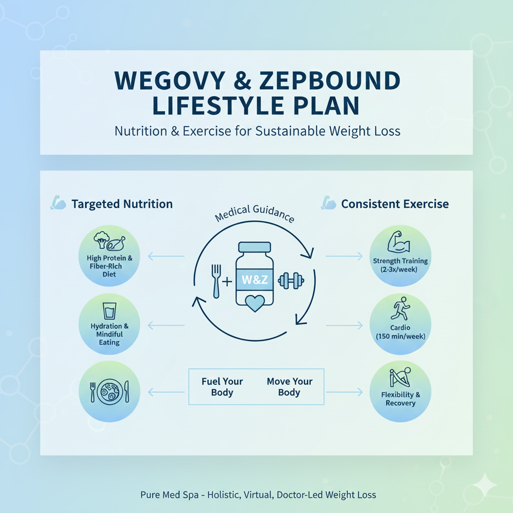 At Pure Med Spa, we believe in a holistic, medically-guided approach. We are dedicated to providing a supervised, affordable, results-driven weight loss program delivered 100% virtually. We offer a free virtual consultation with a doctor and prescription for Wegovy and Zepbound to ensure your journey is safe and successful from day one. This comprehensive guide will walk you through the essential steps for creating an effective Wegovy Zepbound weight loss plan by integrating Wegovy Zepbound diet and exercise into your daily life.