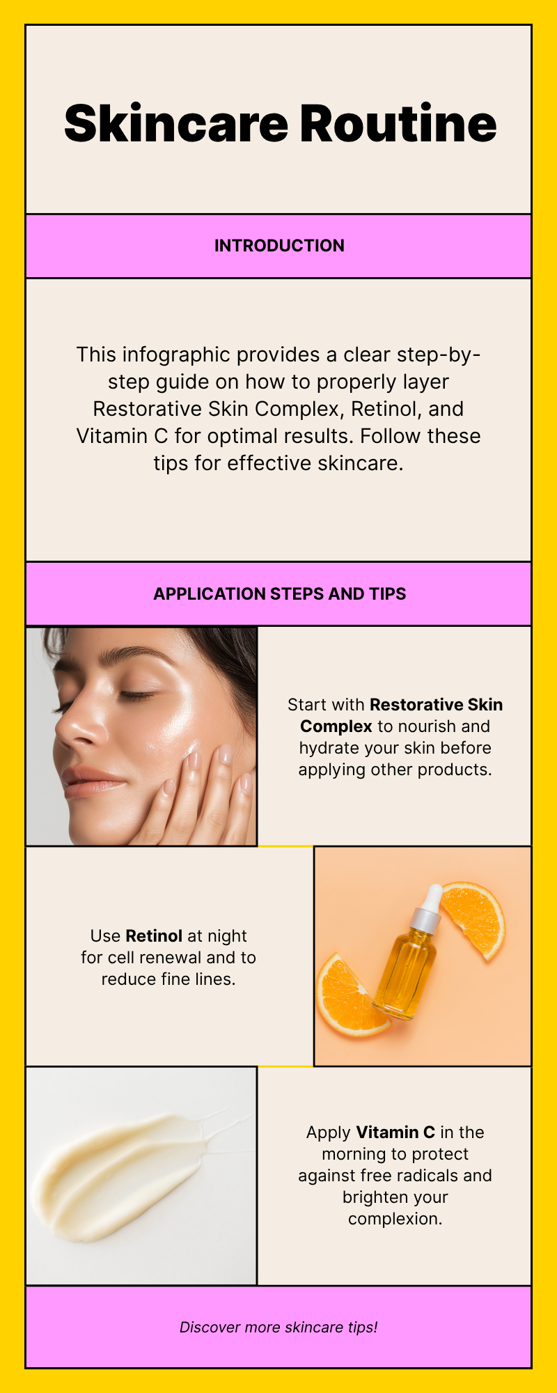 This guide walks you through the best order to apply products, explains why Restorative Skin Complex pairs well with other actives, and highlights common mistakes to avoid.