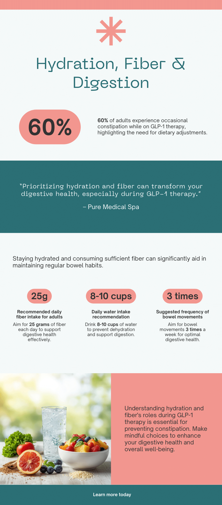 Working with a registered dietitian or consulting a healthcare professional at Pure Medical Spa can help tailor fiber intake based on individual health conditions and treatment goals. Personalized guidance ensures digestive support without triggering bloating or discomfort.