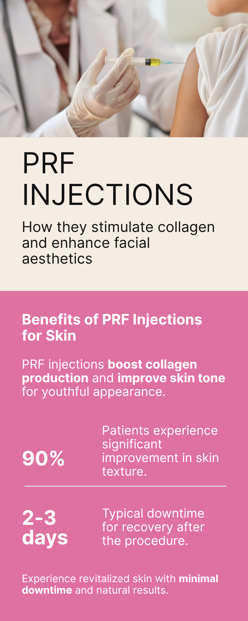 - PRF skin tightening: Over time, the collagen and elastin stimulation leads to firmer, smoother skin.