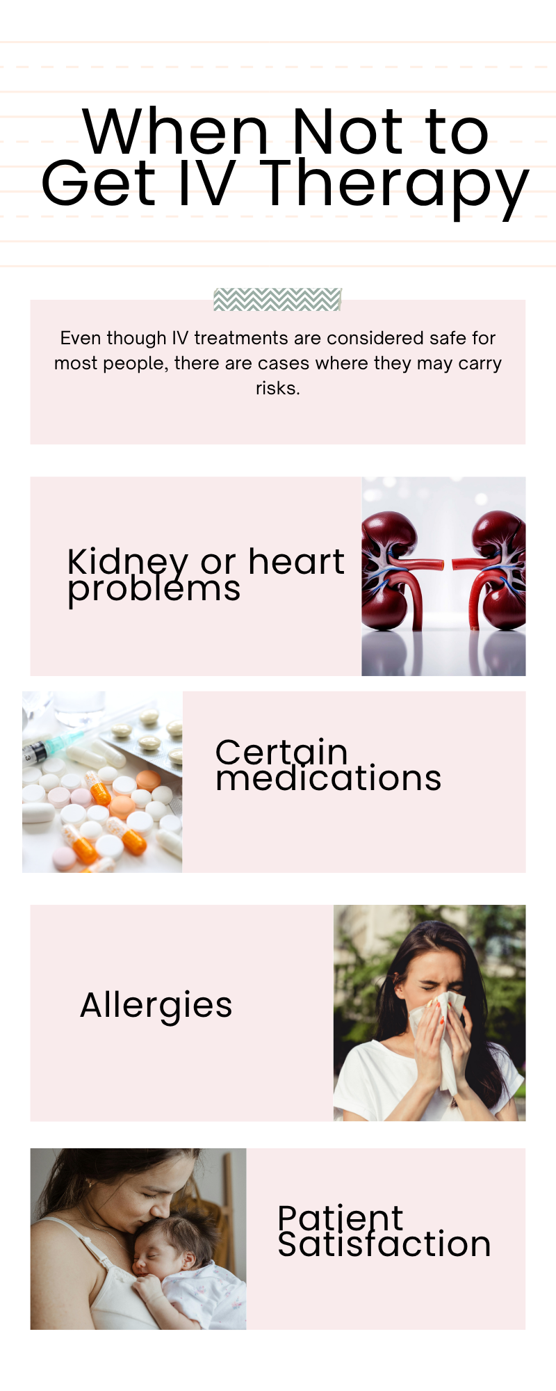 You may be wondering: Who should avoid IV drips completely? Some situations make IVs less safe.